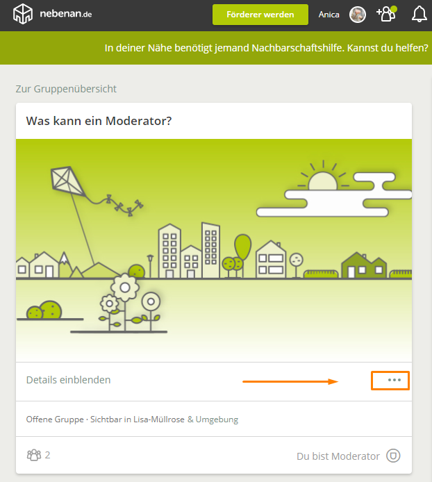 Wenn du dann nicht in der Gruppe bleiben möchtest, kannst du die Gruppe jederzeit verlassen, sobald du eine:n neue:n Moderator:in ernannt hast. Wie das funktioniert, siehst du unter: Wie kann ich eine Gruppe verlassen?