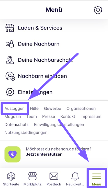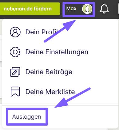 Klicke auf dein Profilbild oben rechts und dann im Menü unten auf „Ausloggen“.
